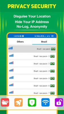 Oplev den ultimative online frihed og uovertruffen privatlivsbeskyttelse med Brazil VPN. Denne innovative applikation giver dig mulighed for at maskere din IP-adresse, så du kan surfe anonymt og uden bekymringer. Uanset om du er forbundet via Wi-Fi, LTE, 3G, 4G eller en hvilken som helst mobil dataforbindelse, fungerer Brazil VPN problemfrit og sikrer, at din online tilstedeværelse forbliver fortrolig. Styrk din Wi-Fi-sikkerhed og skærm dit digitale fodspor mod nysgerrige øjne med en proxyserver-IP, der effektivt erstatter din lokale adresse.