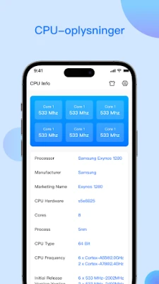 Enhedsinfo: System og CPU-info giver dig detaljeret indsigt i din enheds hardware og software. Overvåg CPU, RAM, lager, batteri, sensorer og mere i realtid. Udfør hardwaretests og benchmark din enhed for at forstå dens ydeevne. Få omfattende system- og CPU-information lige ved hånden.