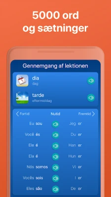 Mondly tilpasser sig dynamisk din individuelle læringsstil og fungerer som din skræddersyede sprogpartner. Følg din fremgang nøje med detaljeret statistik, og lad dig motivere af Mondlys førerstavle, hvor du kan konkurrere med venner og andre elever fra hele verden. Med den integrerede funktion for verbumsbøjning kan du øjeblikkeligt se den fulde bøjning af ethvert udsagnsord med oversættelse, langt mere effektivt end en traditionel ordbog. Gennem denne intelligente og interaktive læring vil du hurtigt mestre de 5000 mest essentielle portugisiske ord og udtryk og være godt på vej til at tale sproget flydende.