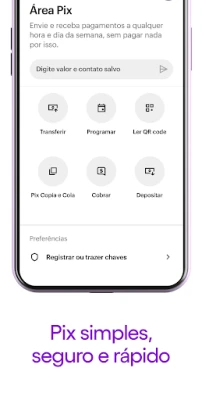 Udover disse fordele tilbyder Nubank også nemme og gratis Pix-overførsler, skræddersyede forsikringsløsninger til at beskytte dine værdier og de mennesker, du holder af, samt retfærdige og tilgængelige lån. Vi tager højde for hele familien med konti, der er designet til mindreårige. Skulle du have brug for hjælp, står vores dedikerede menneskelige supportteam klar 24 timer i døgnet, alle ugens dage. For ekstra tryghed inkluderer vi også intelligent beskyttelse mod svindelopkald, der identificerer og blokerer mistænkelige numre, hvis du vælger at aktivere funktionen.