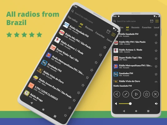 Lyt live til de bedste brasilianske FM-, AM- og internetradiostationer med Radio Brazil. Vælg mellem nyheder, sport, talk og musik, og følg dine yndlingsprogrammer. Oplev en verden af brasiliansk radio, nemt og bekvemt. Få adgang til et bredt udvalg af brasilianske kanaler direkte i Radio Brazil.