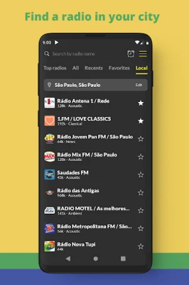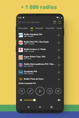 Dyk ned i Brasiliens pulserende lydbillede med Radio Brazil, din gratis adgang til et utroligt udvalg af over 17.000 brasilianske radiostationer. Vores applikation er designet med en elegant, brugervenlig og lynhurtig grænseflade, der garanterer en førsteklasses lytteoplevelse – helt uden abonnement eller skjulte gebyrer. Oplev en verden af musik og nyheder lige ved hånden, og få endnu nemmere adgang til dine foretrukne kanaler direkte fra din startskærm med vores intuitive widget.