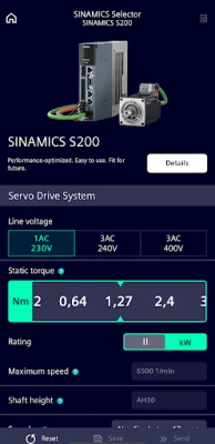 SINAMICS Selector gør det nemt at finde artikelnumre til dine SINAMICS lavspændingsomformere. Appen dækker effekter fra 0.12 kW til 630 kW, inklusive modeller som V20, G120-serien, G220 og servodrev V90, S200, S210. Strømlin din produktudvælgelse hurtigt.