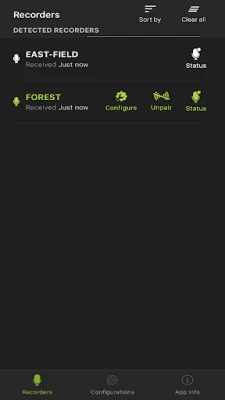 Få fuld kontrol over dine Wildlife Acoustics Song Meter Mini, Mini 2, Mini Bat, Mini Bat 2, Micro og Micro 2 optagere. Konfigurer indstillinger og tjek nemt status for dit vildtmonitoreringsudstyr direkte fra din enhed.