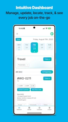 Specifi er en effektiv app til personalestyring af udegående teams. Den hjælper medarbejdere med nemt at registrere tid, håndtere arbejdsordrer og stemple ind/ud. Appen registrerer automatisk ankomster til arbejdsstedet for problemfri tidsregistrering.
