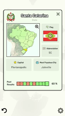 Dyk ned i Brasiliens fascinerende geografi og kultur med denne engagerende quizoplevelse. Uanset om du er en nysgerrig globetrotter, en studerende, der ønsker at forbedre din viden, eller blot elsker en god udfordring, åbner denne applikation døren til de brasilianske staters rige verden. Forbered dig på at udforske alt fra delstaternes placering på kortet til deres unikke symboler og administrative detaljer, alt sammen i et intuitivt og lærerigt format. Det er den perfekte måde at berige din forståelse af Sydamerikas største nation på.